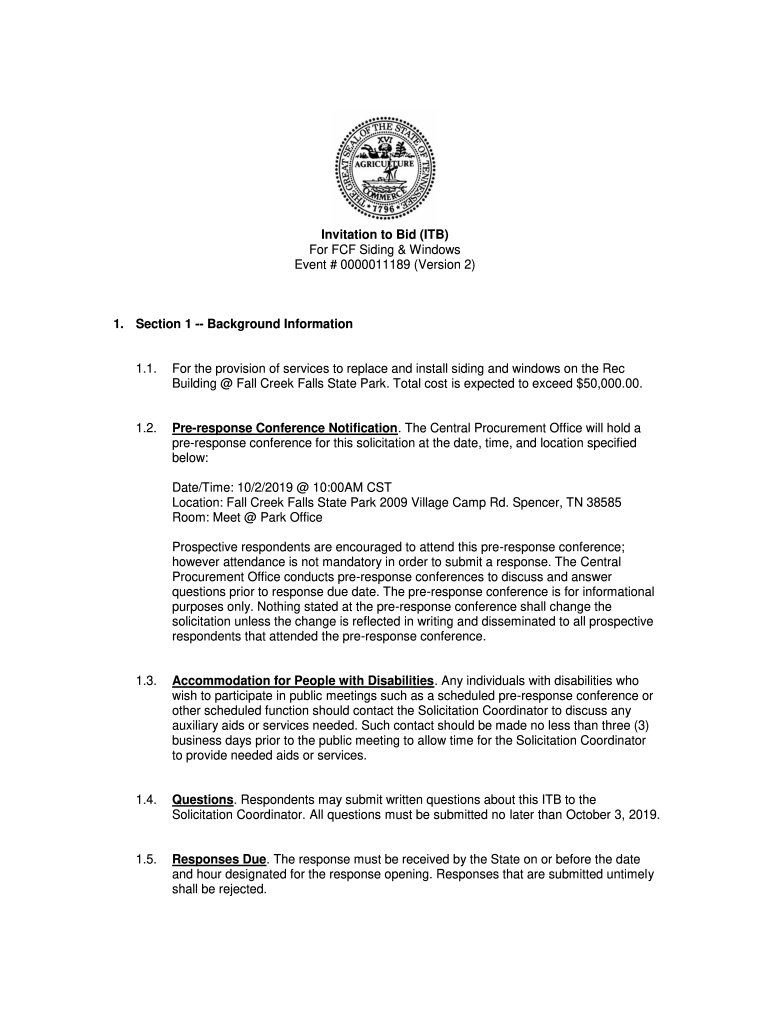 Invitation to Bid (ITB) For FCC Siding & Windows Event # 0000011189 (Version 2)1. Section 1 Background Information1.1. For the provision of services to replace and install siding and windows on the