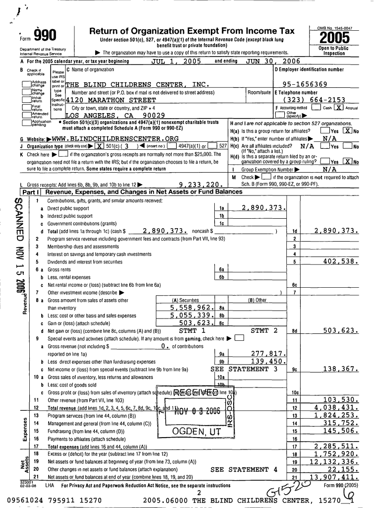 .1 Form990benefit trust or private foundation)JUL1and ending D Employer identification numberless C Name of organizationapplicableuse IRS label ntorAddress Chan THE BLIND CHILDREN CENT7J1v7vJNumber