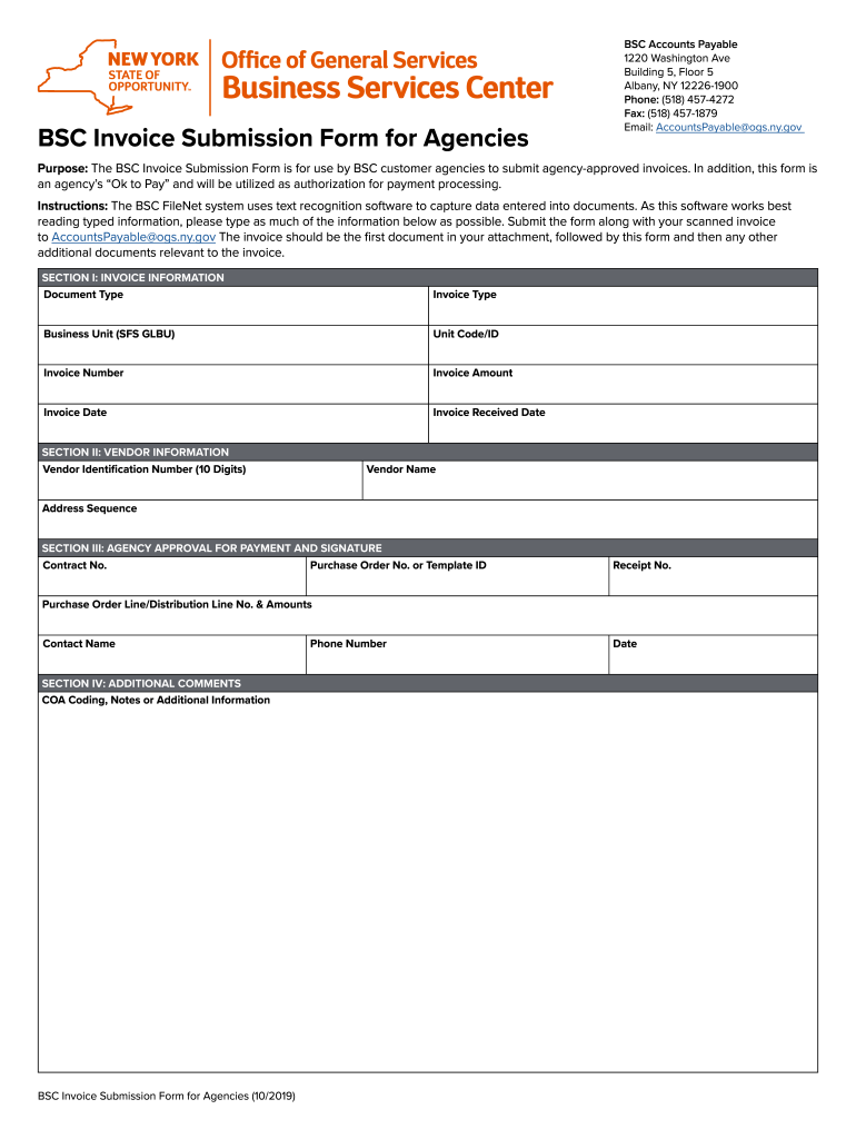 Office of General ServicesBusiness Services Center BSC Invoice Submission Form for Agencies BSC Accounts Payable