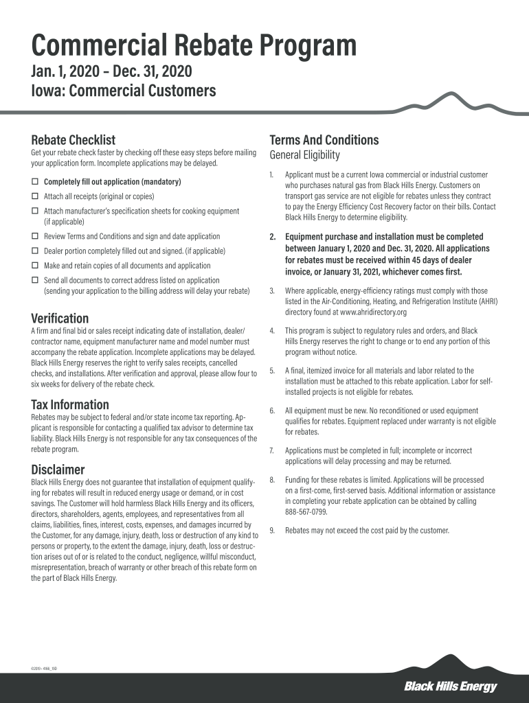 Commercial Rebate Program Jan. 1, 2020 Dec. 31, 2020 Iowa: Commercial Customers Rebate Checklist your rebate check faster by checking off these easy steps before mailing your application form. Incomplete