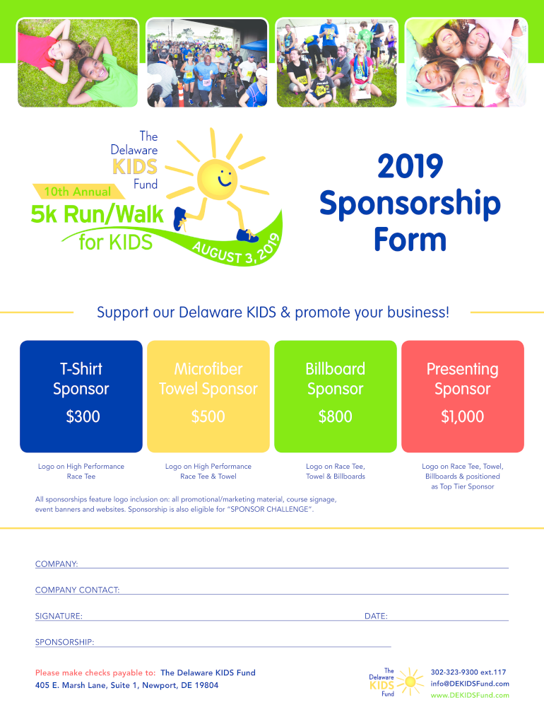 Get the free 2019 Sponsorship Form - The Delaware KIDS Fund