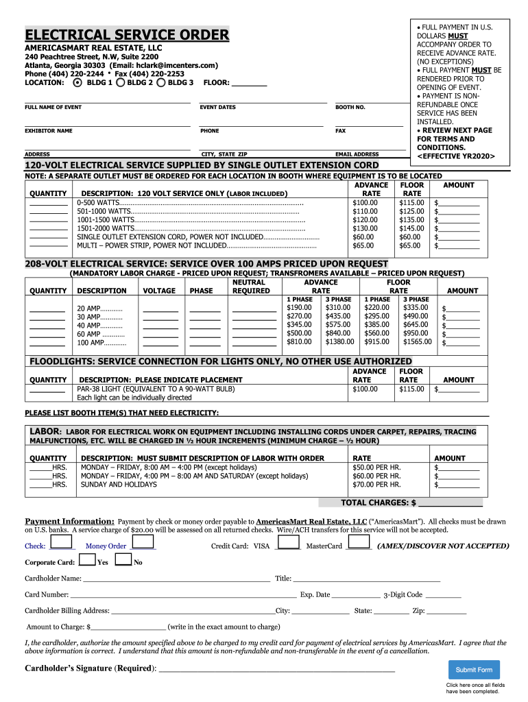 Get the free Order Electrical Services PDF - Atlanta Convention Center