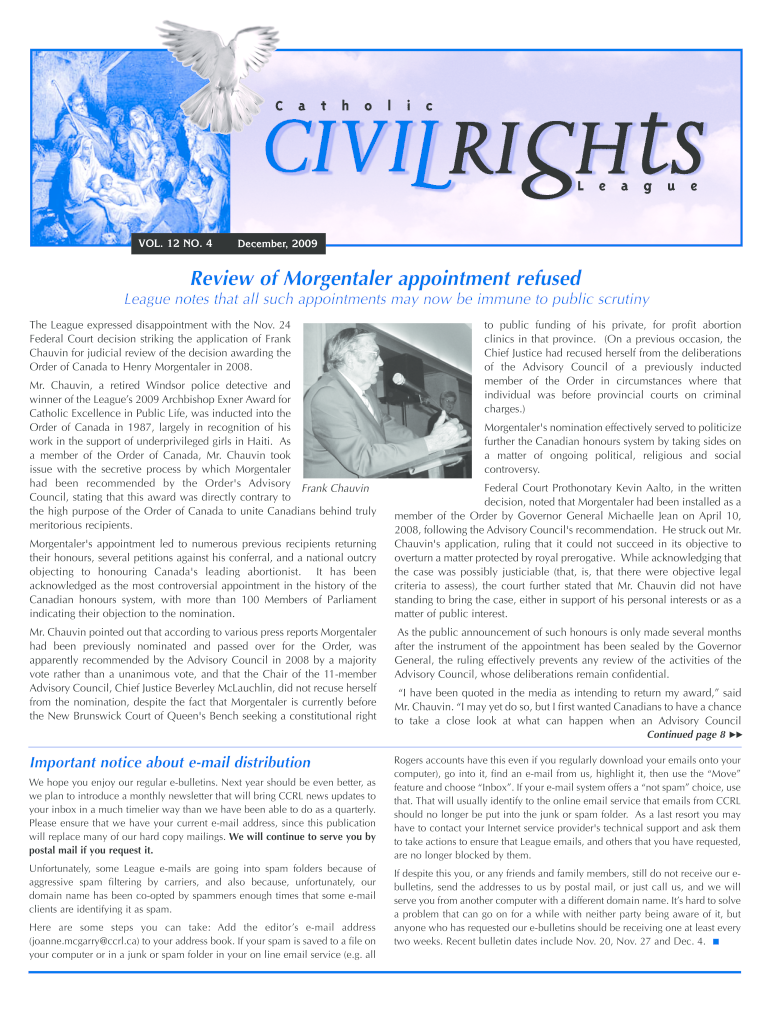 VOL. 12 NO. 4December, 2009Review of Morgentaler appointment refused