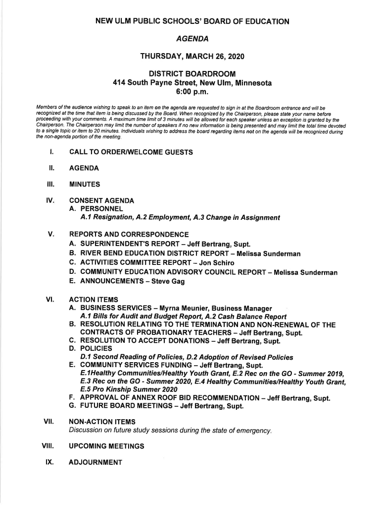 NEW ULM PUBLIC SCHOOLS\' BOARD OF EDUCATIONAGENDA