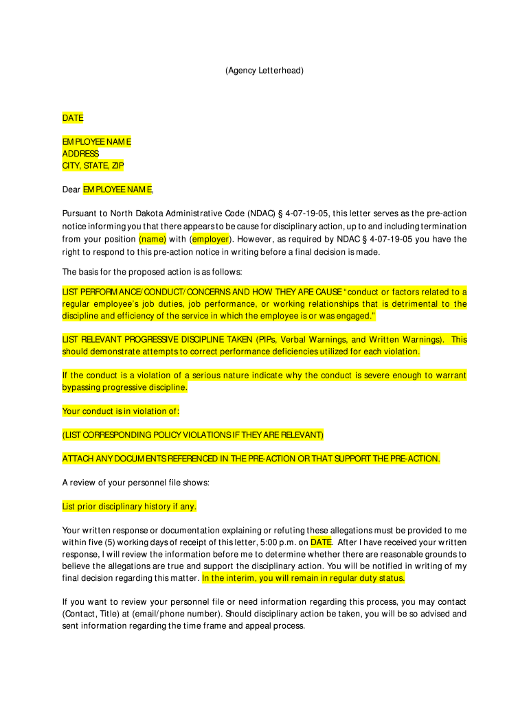 (Agency Letterhead)DATE EMPLOYEE NAME ADDRESS CITY, STATE, ZIP Dear EMPLOYEE NAME, Pursuant to North Dakota Administrative Code (DAC) 4071905, this letter serves as the reaction notice informing you