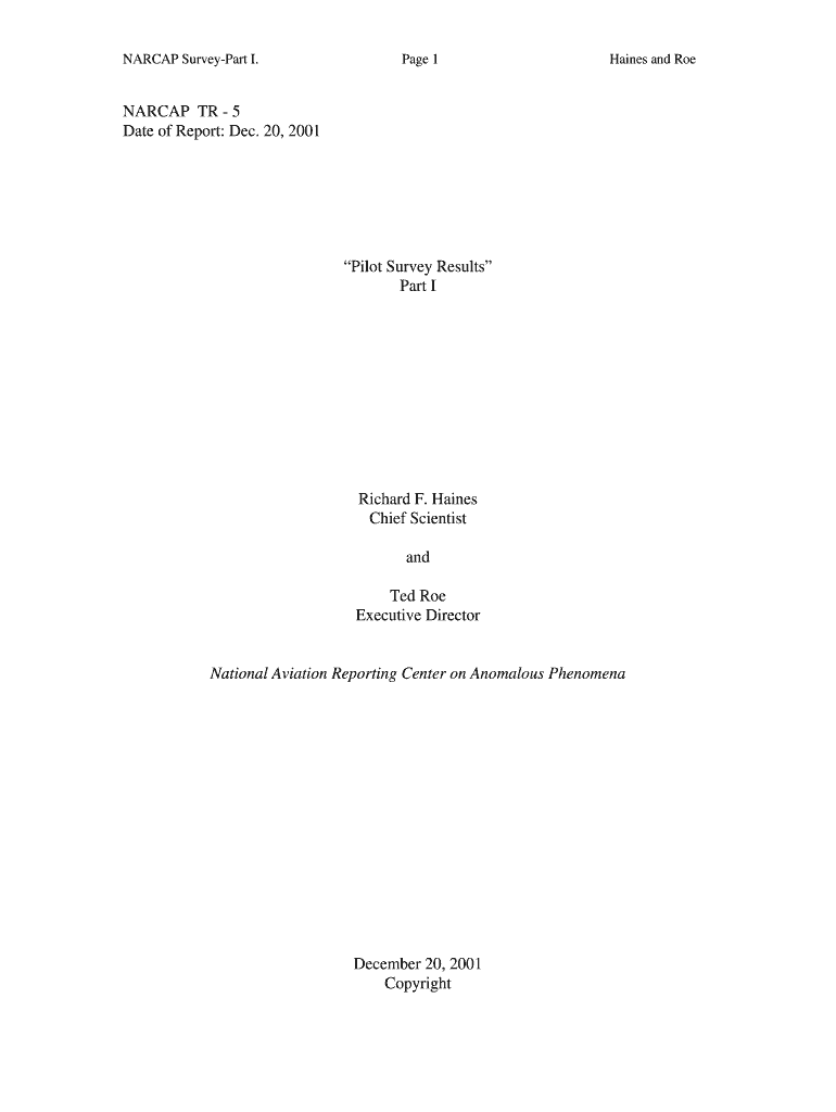 Get the free NARCAP TR - 5 Date of Report: Dec. 20, 2001 Pilot Survey ...