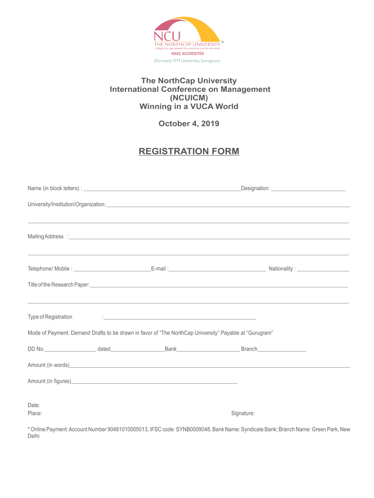 Get the free Regisrtation Form Intl Conference 2019.cdr - The NorthCap ...