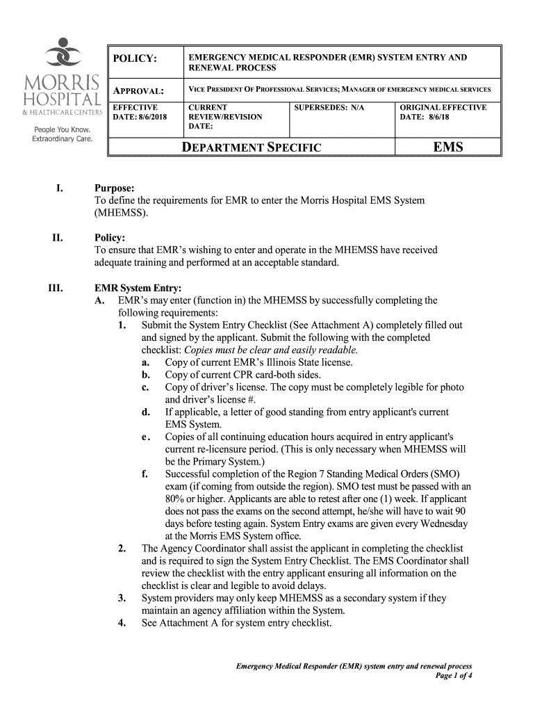 RENEWAL PROCESSAPPROVAL:VICE PRESIDENT OF PROFESSIONAL SERVICES; MANAGER OF EMERGENCY MEDICAL SERVICESEFFECTIVE