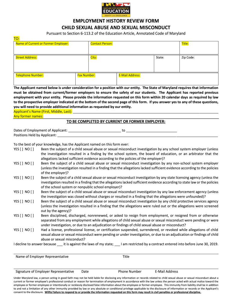 Pursuant to Section 6113.2 of the Education Article, Annotated Code of Maryland