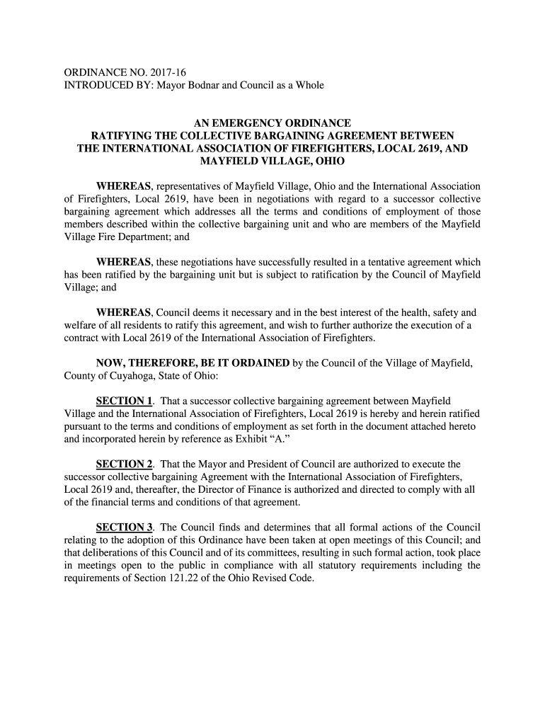 INTRODUCED BY: Mayor Rodney and Council as a Whole AN EMERGENCY ORDINANCE