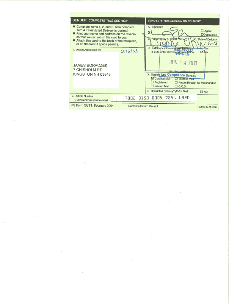 T I Complete items 1, 2, and 3. Also complete item 4 if Restricted Delivery is desired. Print your name and address on the reverse so that we can return TH card to you. Attach this card to the back