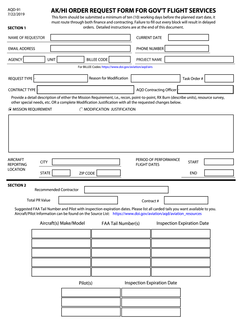 AK/HI ORDER REQUEST FORM FOR GOV\'T FLIGHT SERVICESAQD91