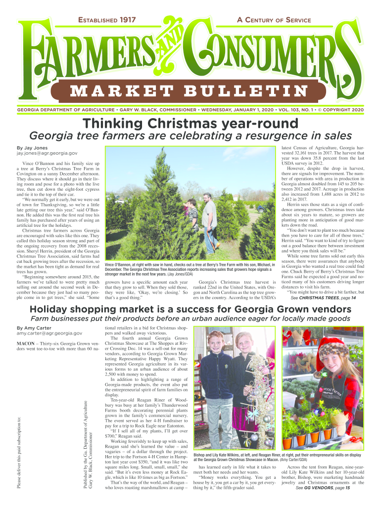 Established 1917a CEnturyofsErviCEGEORGIA DEPARTMENT OF AGRICULTURE GARY W. BLACK, COMMISSIONER WEDNESDAY, JANUARY 1, 2020, VOL. 103, NO. 1 COPYRIGHT 2020Thinking Christmas yearroundGeorgia tree farmers