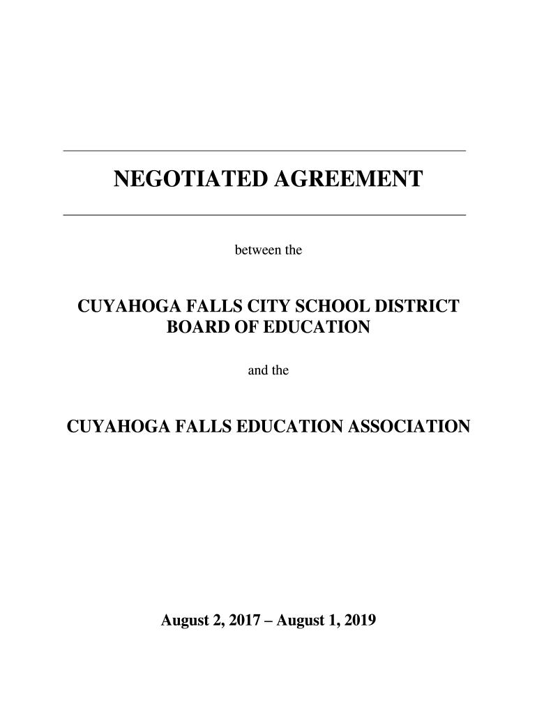 NEGOTIATED AGREEMENT between Cuyahoga Falls CITY SCHOOL DISTRICT BOARD OF EDUCATION and Cuyahoga Falls EDUCATION ASSOCIATION August 2, 2017, August 1, 2019TABLE OF CONTENTS ARTICLEPAGE1RECOGNITION