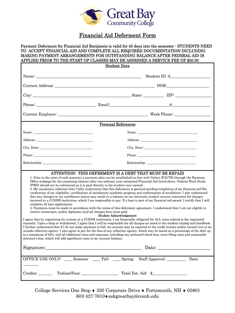 Get the free Financial Aid Deferment Form - greatbay.edu