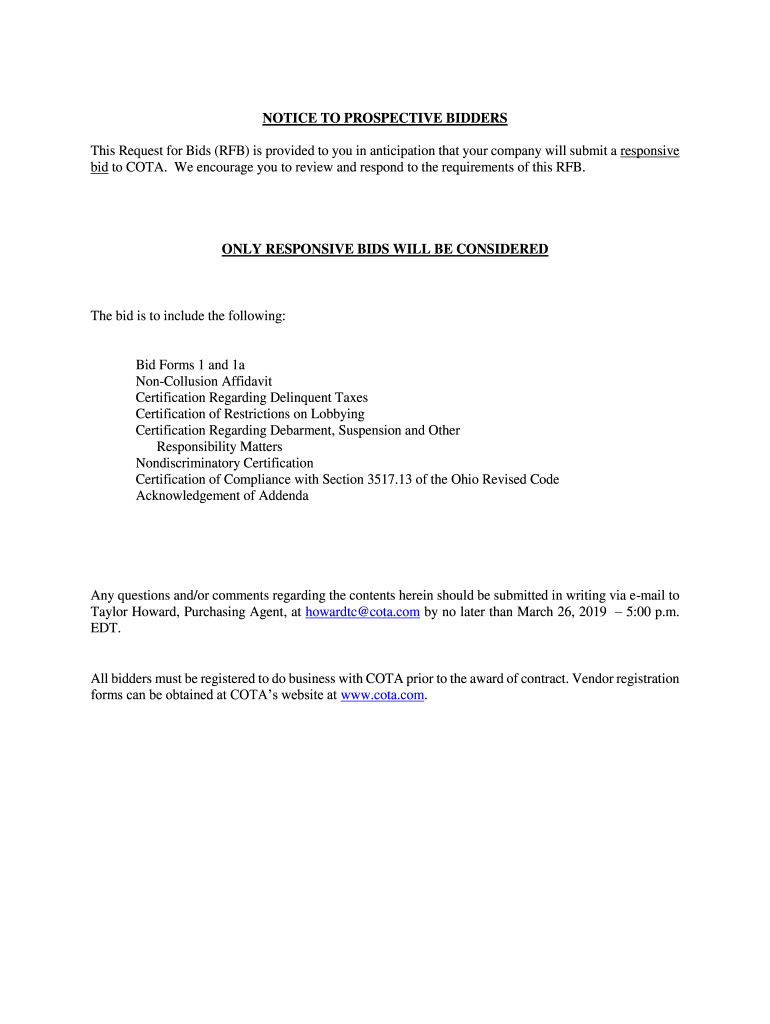 Get the free NOTICE TO PROSPECTIVE BIDDERS - Central Ohio Transit Authority