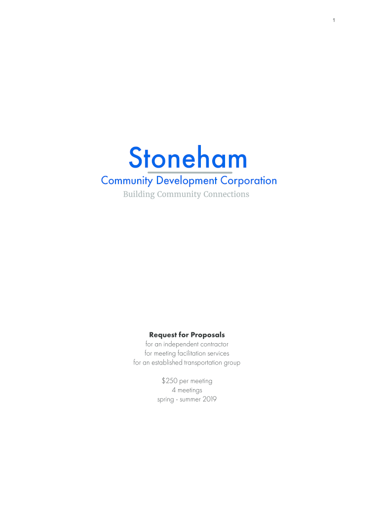 1Building Community ConnectionsRequest for Proposals for an independent contractor for meeting facilitation services for an established transportation group $250 per meeting 4 meetings spring summer