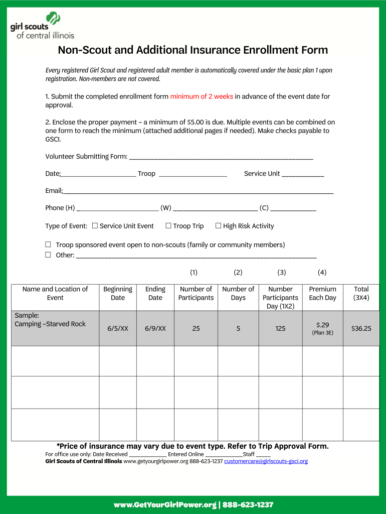 Conscious and Additional Insurance Enrollment Form Every registered Girl Scout and registered adult member is automatically covered under the basic plan 1 upon registration. Nonmembers are not covered.