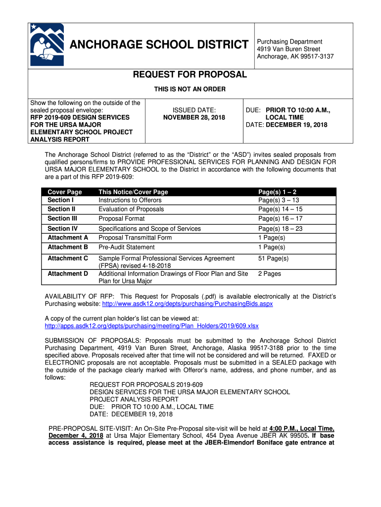 Anchorage, AK 995173137REQUEST FOR PROPOSAL