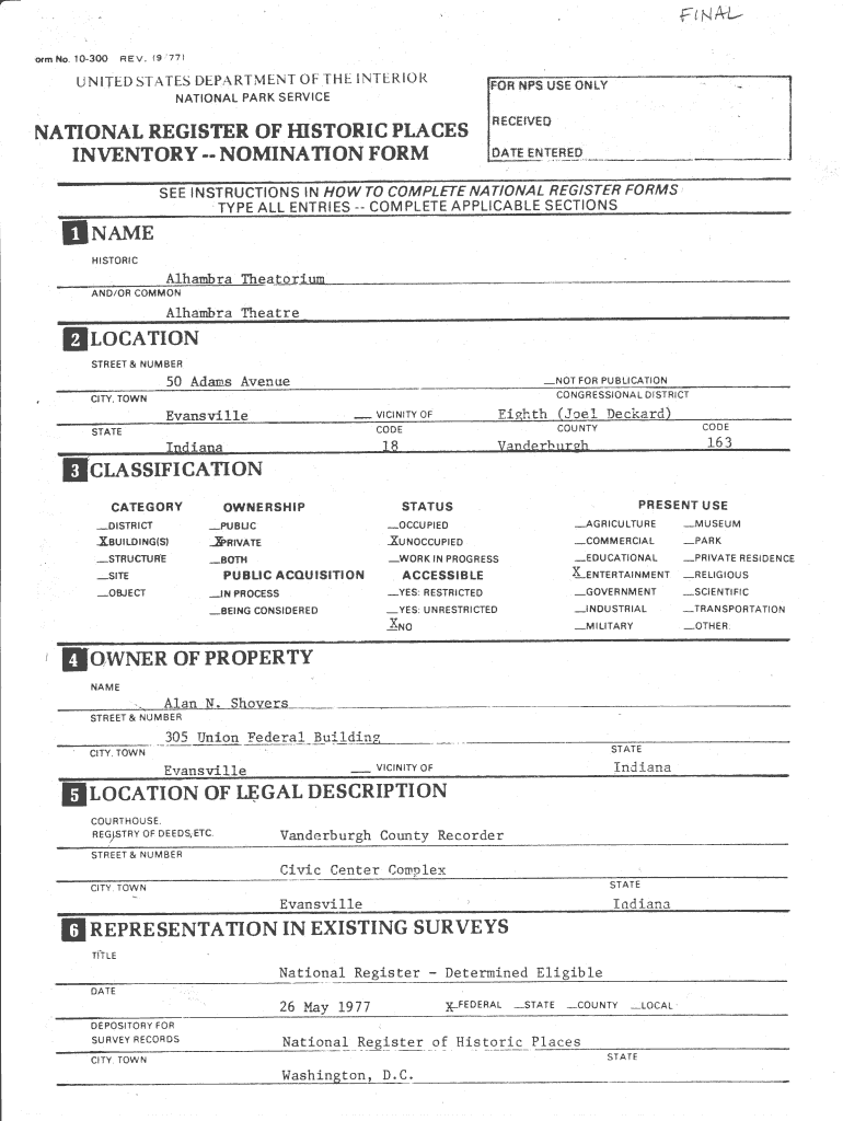 FINAL FMO. 1G300 REV. 9 UNITED STATES DEPARTMENTOFTHE INTO RIOT×PS USE ONLYNATIONAL PARK SERVICENATIONAT REGISTER OF HISTORIC PLACES INVENTORY. NOMINATION FORMFCFIVET DATA INTEREST INSTRUCTIONS IN