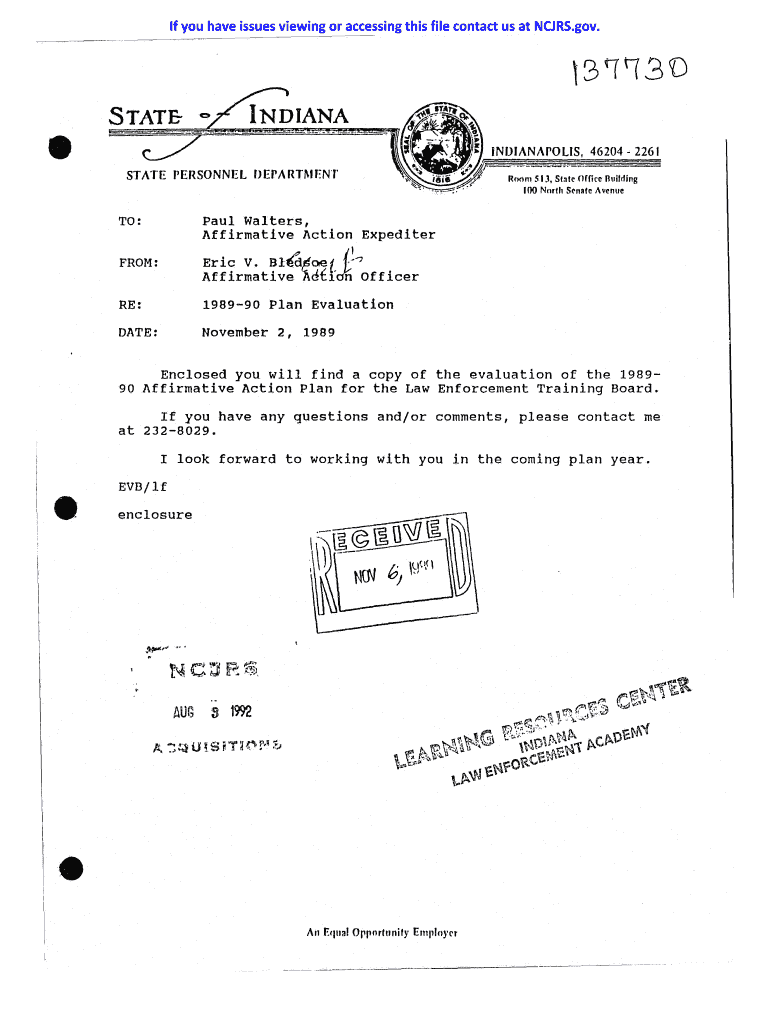 If you have issues viewing or accessing this file contact us at CARS.gov.STATEINDIANAPOLIS, 46204 2261 STATE PERSONNEL DEPARTMENTRoom 51 J, State Office noodling 100 North Single Avenue TO:Paul Walters,