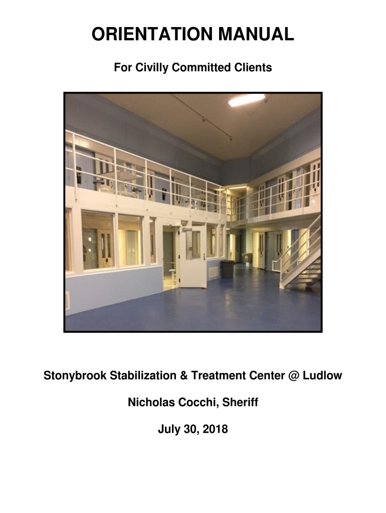 ORIENTATION MANUAL For Civilly Committed ClientsStonybrook Stabilization & Treatment Center Ludo Nicholas Cocci, Sheriff July 30, 2018TABLE OF CONTENTSContents INTRODUCTION .....................................................................................................................................................................