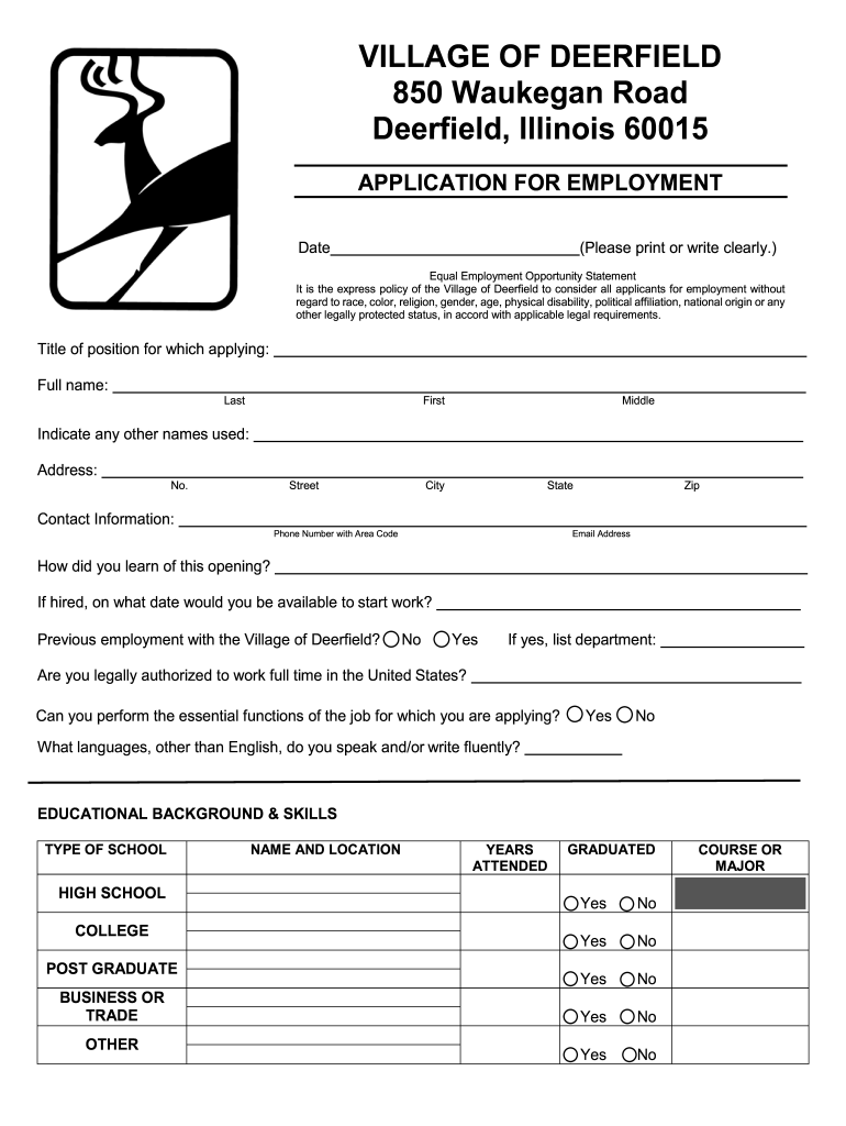 Deerfield Police Department 850 Waukegan Road, Deerfield Illinois 600153206 (847) 945 8636 FAX (847) 9455080 John J. Louis Chief of Police January 21, 2020Thank you for your interest in employment