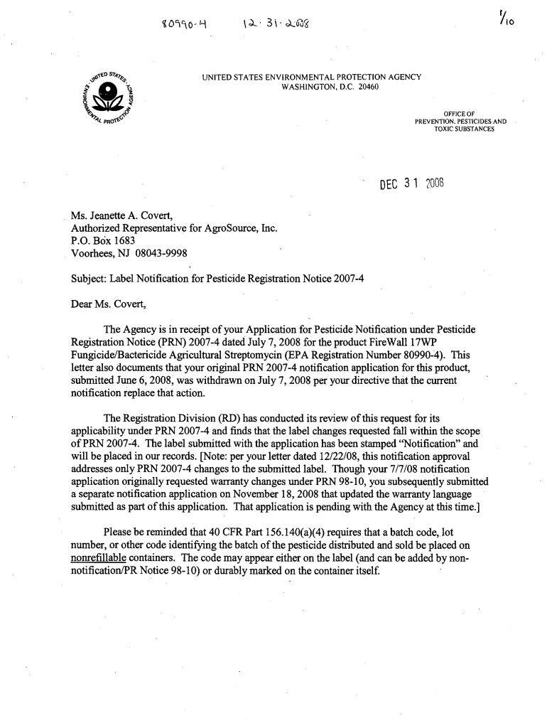 Get the free U.S. EPA, Pesticide Product Label, FIRELINE 17 WP ...