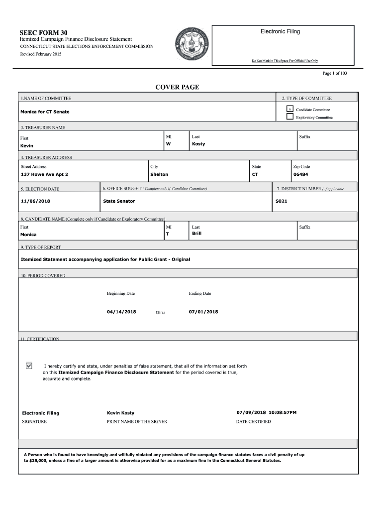 Electronic Filings EEC FORM 30Itemized Campaign Finance Disclosure Statement