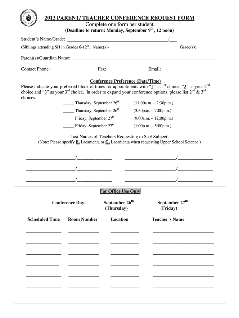 Sections for preferred conference times and teacher names.