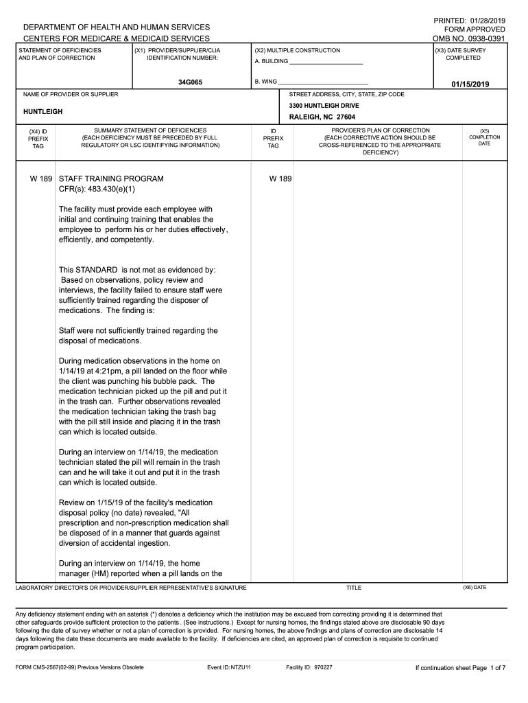 PRINTED: 01/28/2019 FORM APPROVEDDEPARTMENT OF HEALTH AND HUMAN SERVICES CENTERS FOR MEDICARE & MEDICAID SERVICES STATEMENT OF DEFICIENCIES AND PLAN OF CORRECTION(X1) PROVIDER/SUPPLIER/CIA IDENTIFICATION