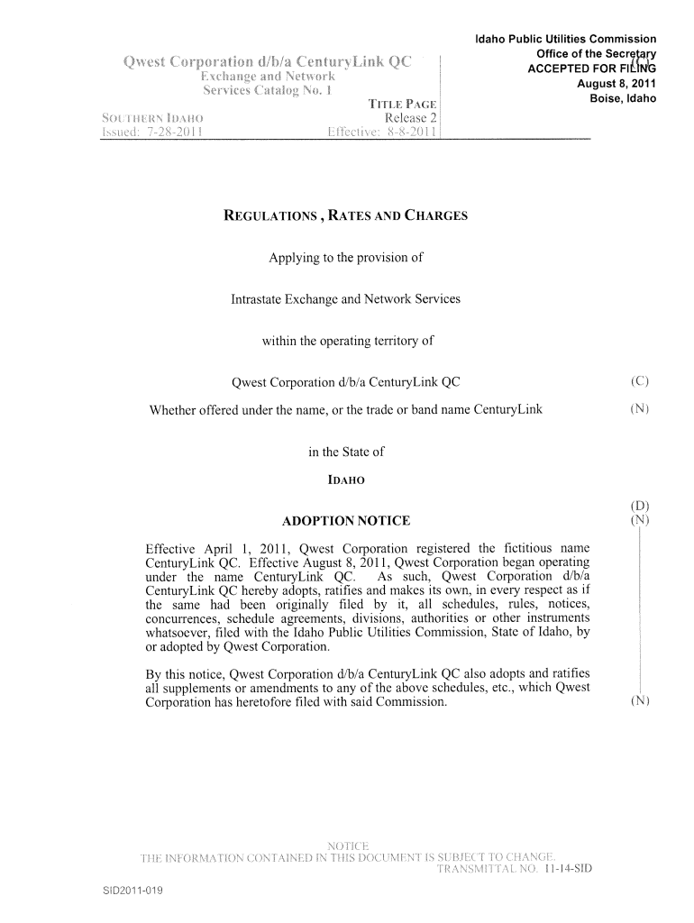 Boise, IdahoRelease 2REGULATIONS, RATES AND CHARGESApplying to the provision of