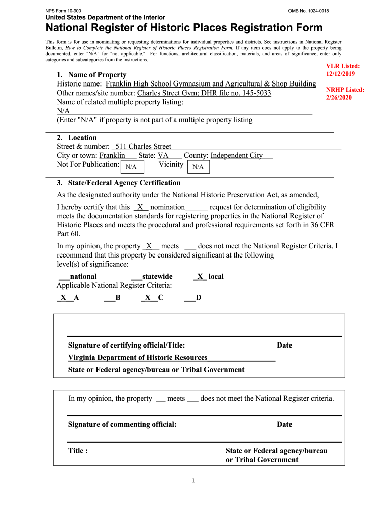 Get the free NPS Form 10-900OMB No. 1024-0018 National Register of ...