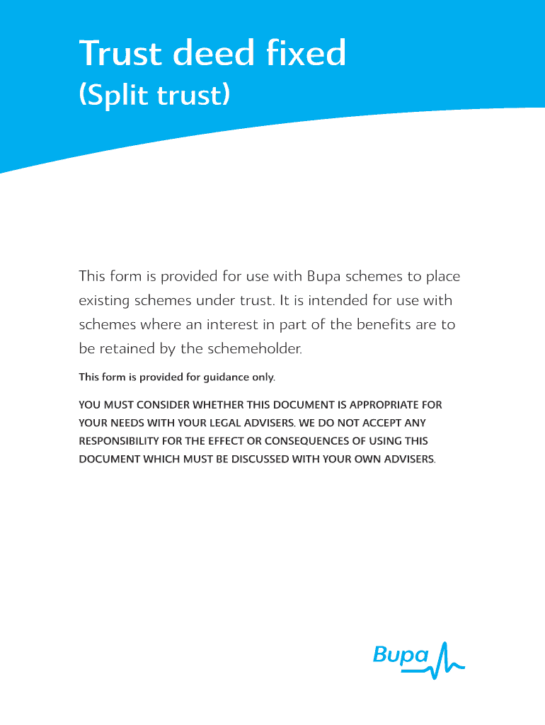 The Bupa Split Trust Deed is a pivotal legal document designed to place existing Bupa schemes under trust. It allows the schemeholder to retain an interest in part of the benefits derived from the trust. This connects directly to the Bupa schemes where the policyholder assigns the policy to trustees, enabling them to manage the policies based on established trust provisions.