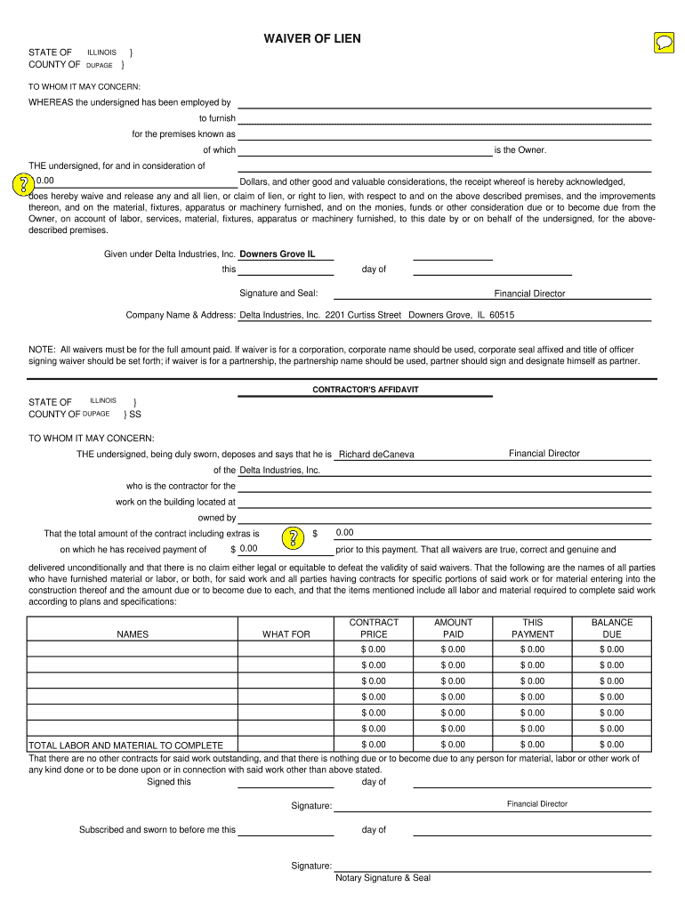 Get the free BWAIVER OF LIENb - Delta Industries Inc - deltaind