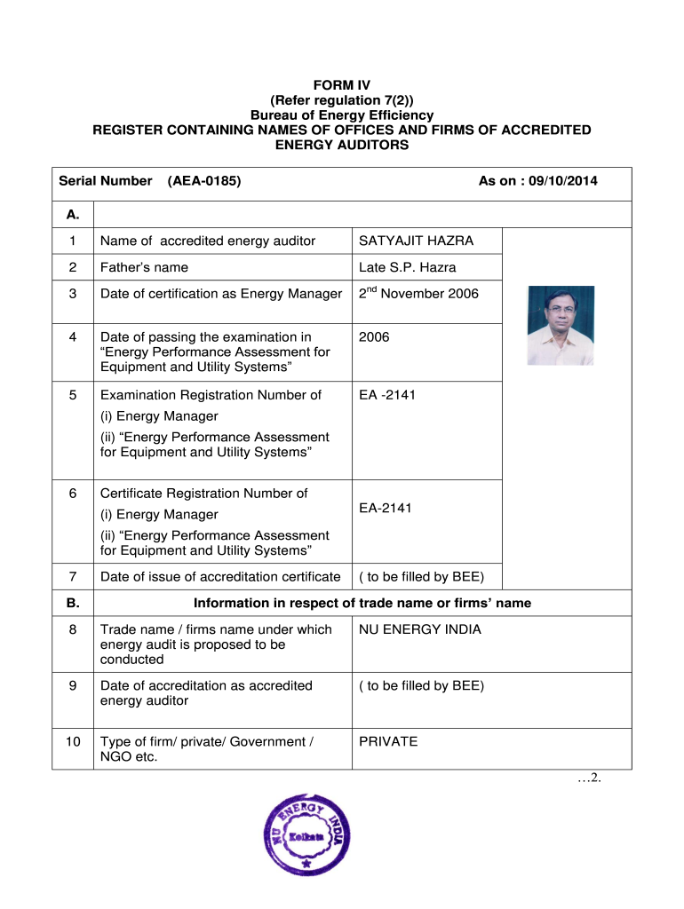 Get the free FORM IV (Refer regulation 7(2)) Bureau of Energy ... - BEE