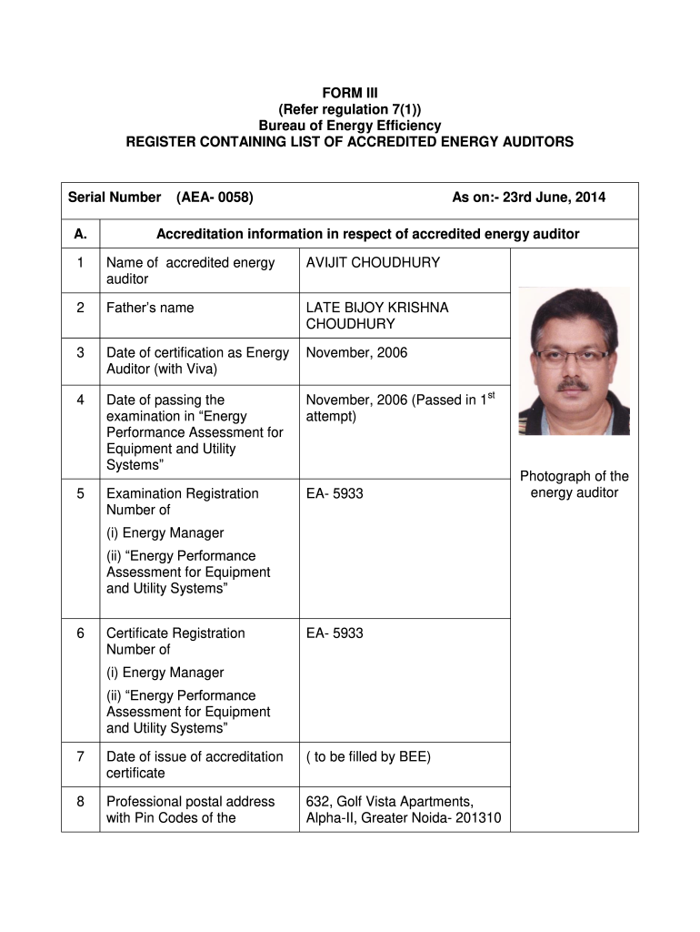 A.(AEA 0058)As on: 23rd June, 2014Accreditation information in respect