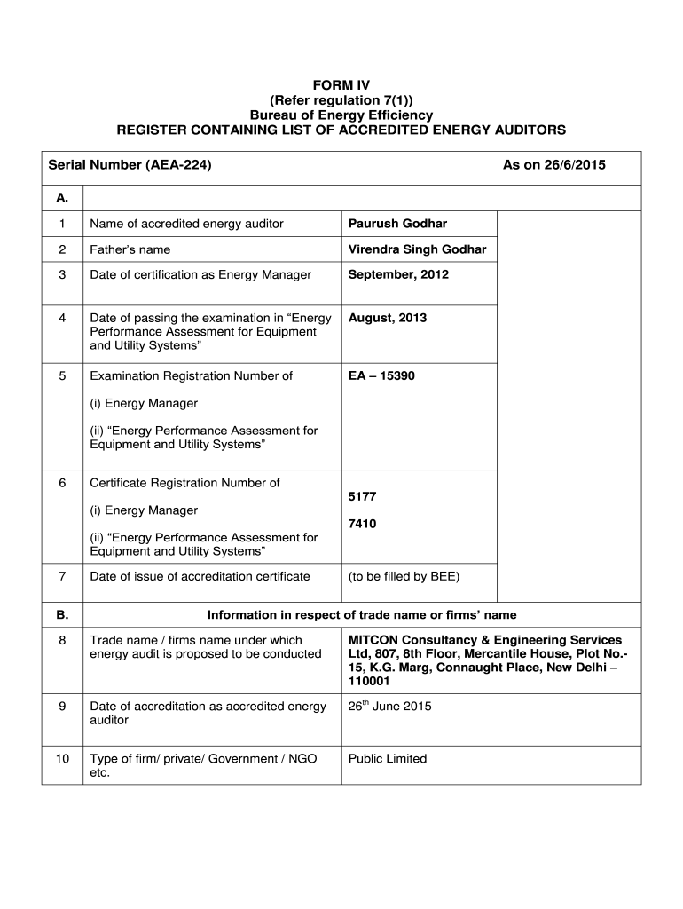 Get the free FORM IV (Refer regulation 7(1)) Bureau of Energy Efficiency ...