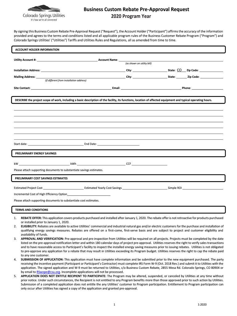 By signing this Business Custom Rebate PreApproval Request (Request), the Account Holder (Participant) affirms the accuracy of the information
