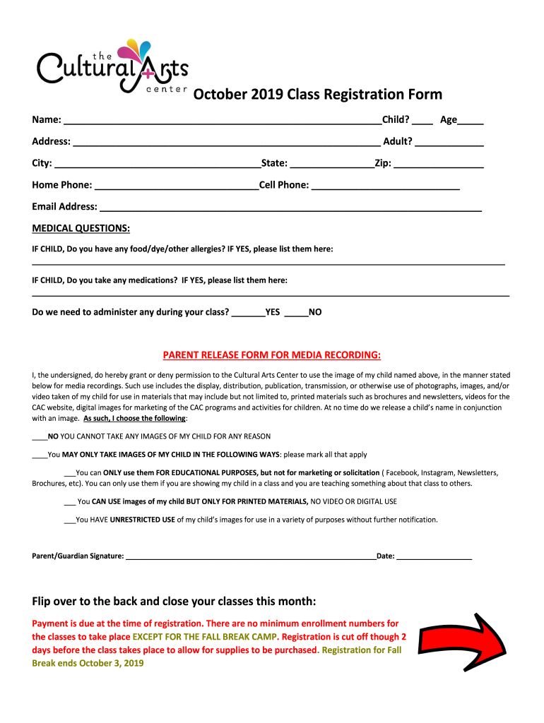 Get the free October 2019 Class Registration Form