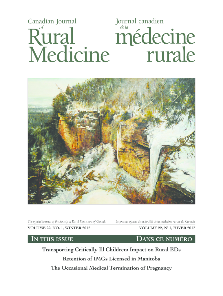 The official journal of the Society of Rural Physicians of CanadaVOLUME 22, NO. 1, WINTER 2017In this issue Le journal official DE la So cit DE la decline rural Du CanadaVOLUME 22, N 1, RIVER 2017Dans