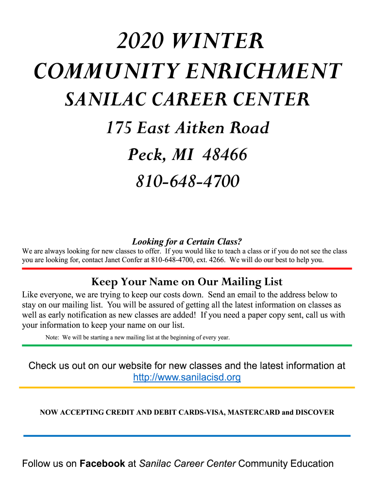 Get the free Commumity Enrichment Brochure - Sanilac ISD
