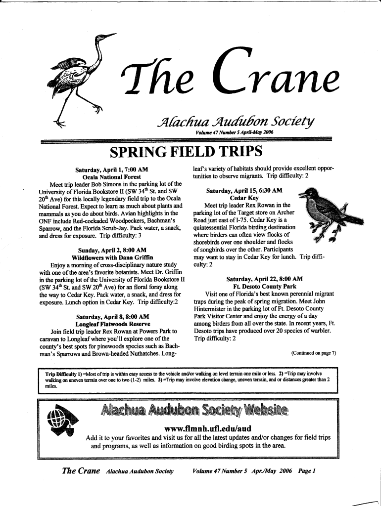 FfreIrcanei,Afac6ua Auction Y&uu17 Number S, aPiLMaYSoc i.e. tY2ilMSPRIIGFIELD TRIPS Saturday, April 1,7:00 AM Ocala National Forest Meet trip leader Bob Simon's in the parking lot of the University
