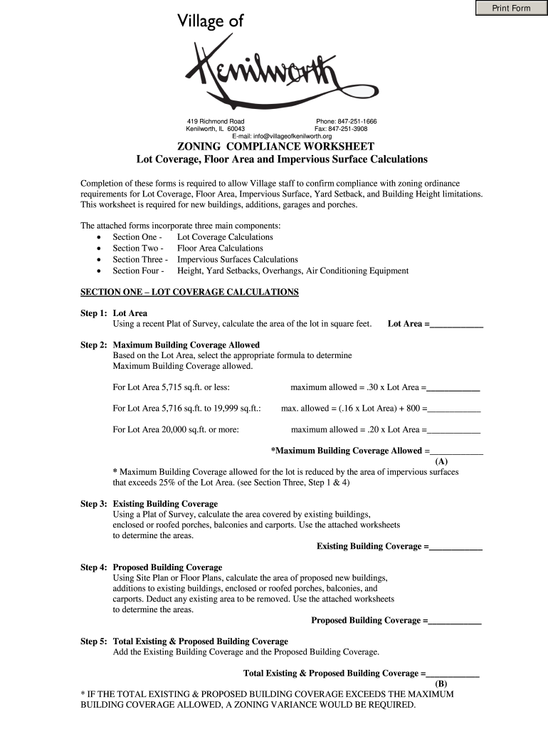 Email: info@villageofkenilworth.orgZONING COMPLIANCE WORKSHEET