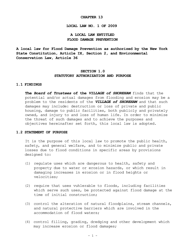 Get the free A local law for Flood Damage Prevention as authorized by the ...