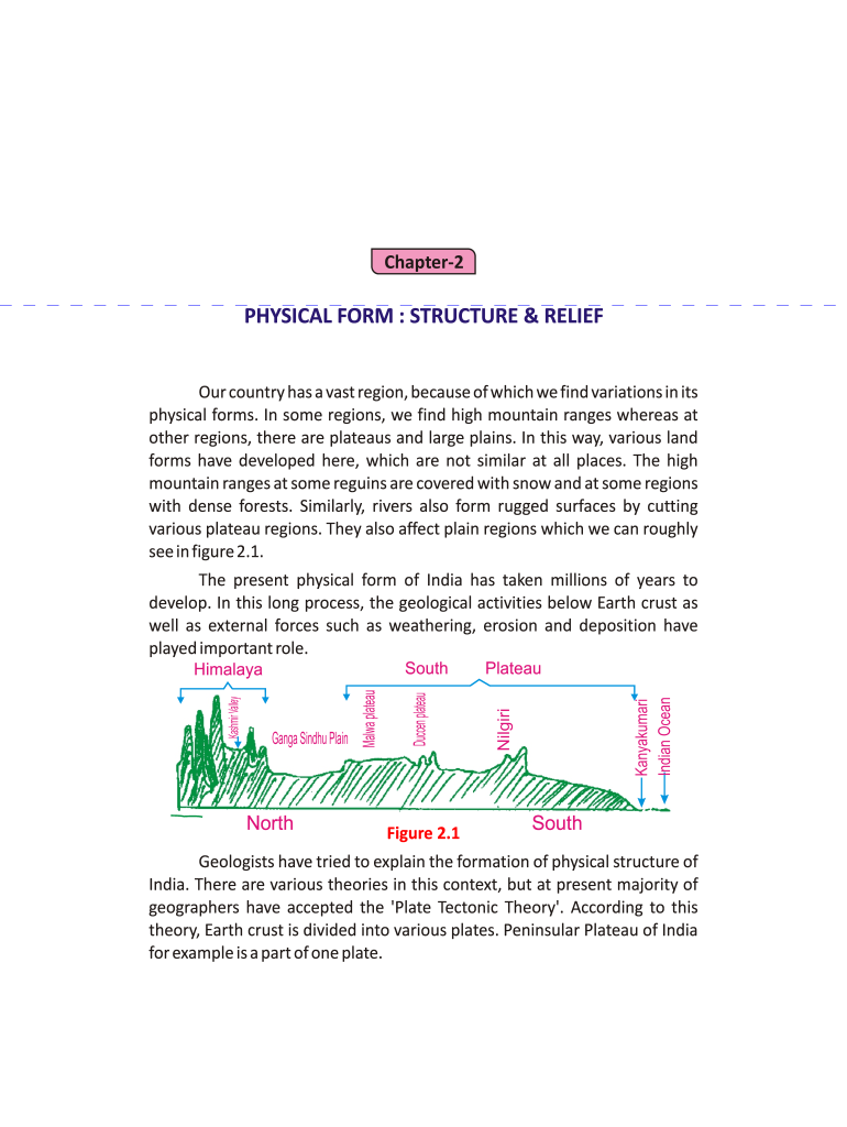 Chapter2PHYSICAL FORM : STRUCTURE & RELIEF Our country has a vast region, because of which we find variations in its physical forms. In some regions, we find high mountain ranges whereas at other