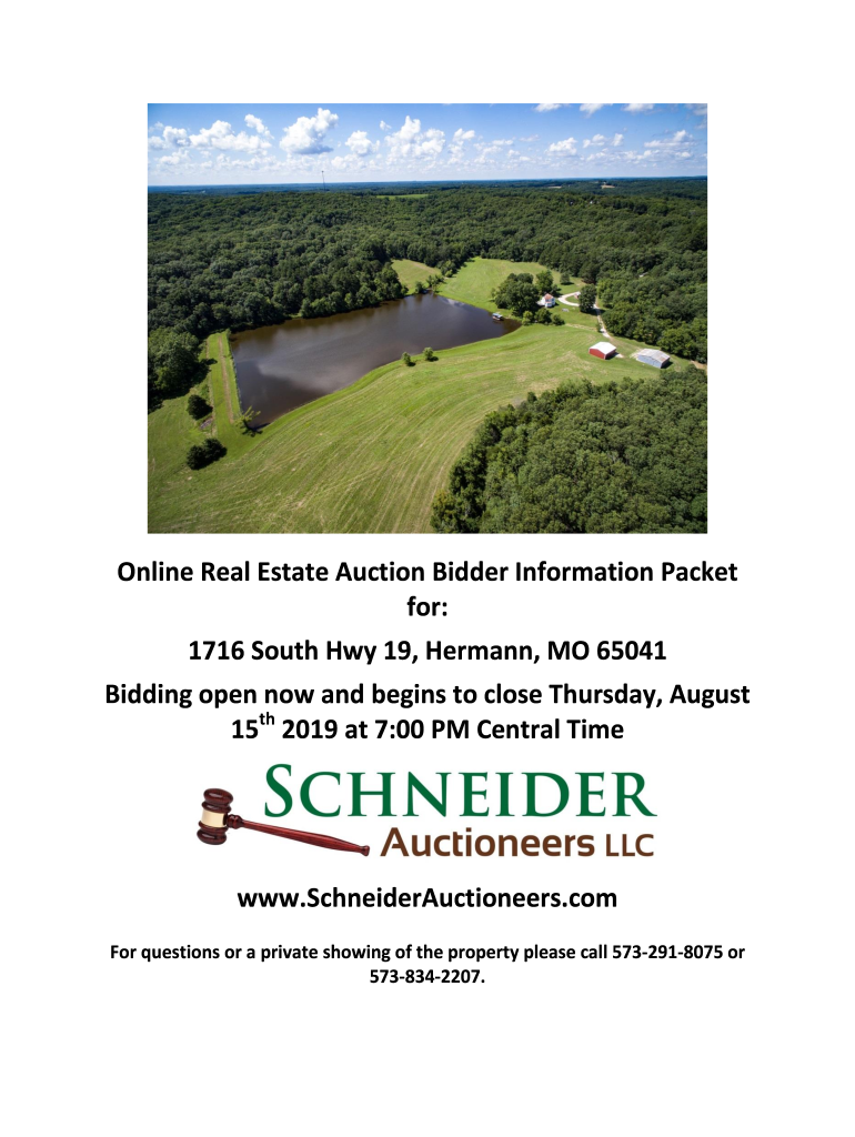 15th 2019 at 7:00 PM Central Time.SchneiderAuctioneers.com