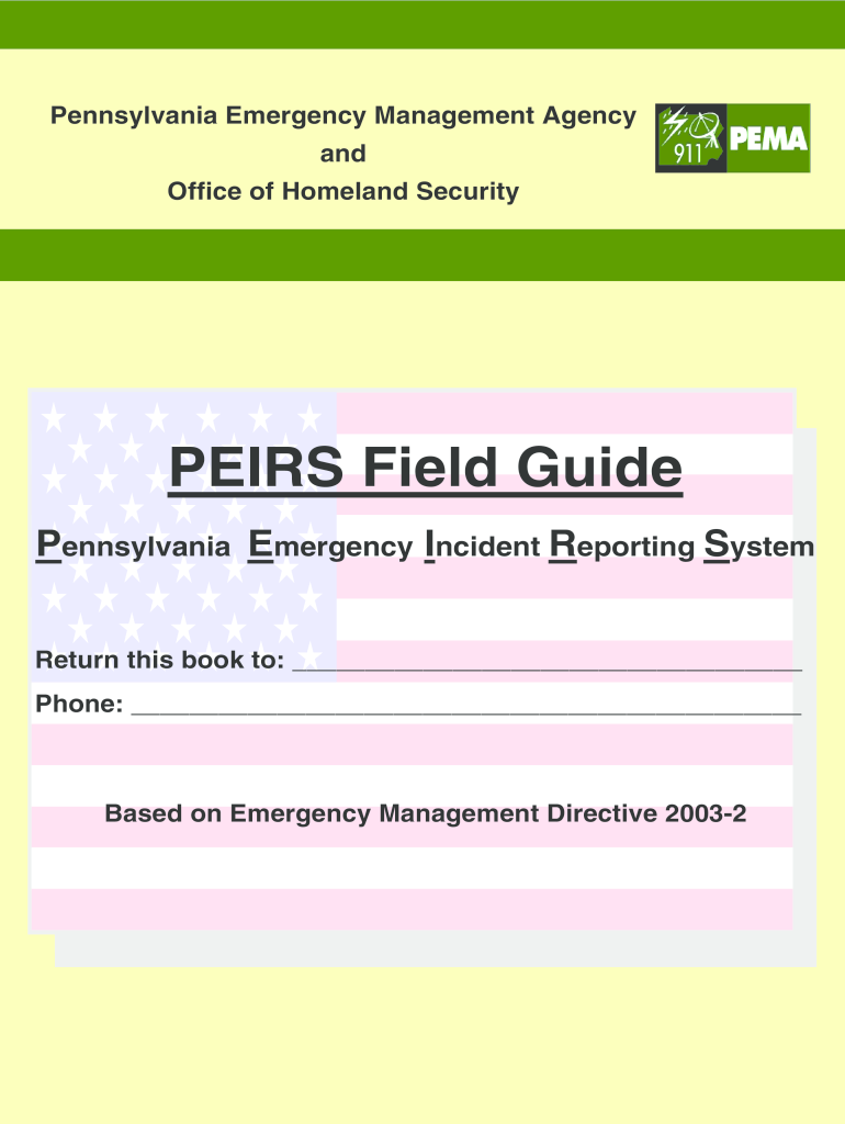 Pennsylvania Emergency Management Agency and Office of Homeland SecurityPEIRS Field Guide Pennsylvania Emergency Incident Reporting System Return this book to: Phone: Based on Emergency Management
