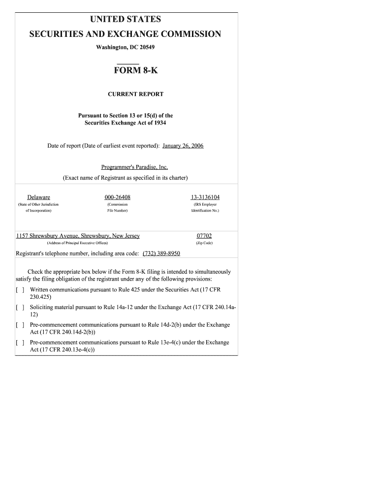 Get the free Programmer's Paradise, Inc. - Form 8K Current Report January 26, 2006