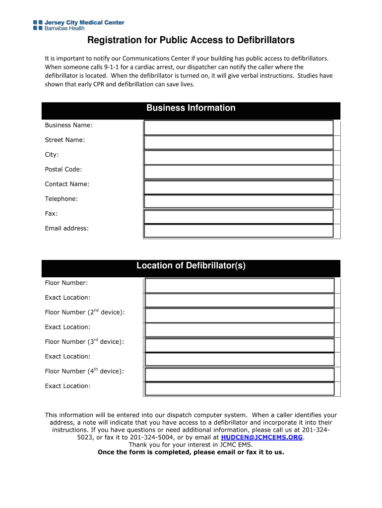 4.Before filling out the form, gather all necessary information like your business name, address, and details of the defibrillator's location within your facility.
